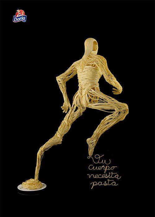 En Urania, desarrollamos esta campaña especial de cuerpos humanos, solicitada por la compañía, que tenia como objetivo formar cuerpos humanos en posición de movimiento, construídos con tiras similares a la pasta.Leer más  El tamaño de las esculturas fue semejante al de una mujer y hombre promedio.